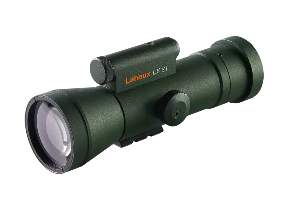 Lahoux LV-81 to nowy wymiar widzenia nocnego. Został zaprojektowany jako przystawka do różnych urządzeń, takich jak lunety karabinowe*, lornetki, kamery fotograficzne i wideo oraz lunety obserwacyjne. Dzięki ogniskowej 80 mm można również zbliżać się i polować na dziko na większej odległości. Masz do wyboru Photonis™ 2+ aż do generacji wzmacniaczy światła szczątkowego Echo i Echo PLUS.