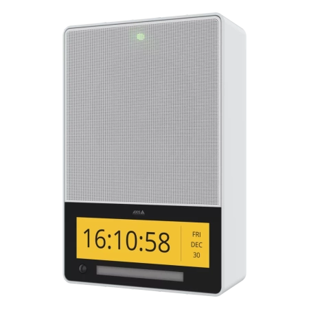 Ten elastyczny głośnik z wyświetlaczem idealnie nadaje się do emisji zarówno komunikatów krytycznych, jak i normalnych, i pomaga zapewniać bezpieczeństwo i informować ludzi, chronić obiekt oraz poprawić wydajność i atmosferę. To samo rozwiązanie może emitować sygnały dzwonka, alarmy i muzykę w tle. Gdy urządzenie nie jest używane, na wyświetlaczu jest widoczna data i godzina. Można również skonfigurować głośnik z wyświetlaczem tak, aby automatycznie reagował na zdarzenia za pomocą wbudowanego detektora ruchu. Aby uzyskać jeszcze więcej możliwości, można zintegrować kamery lub inne urządzenia Axis lub skorzystać z otwartej platformy do integracji rozwiązań innych firm — na przykład systemów powiadomień masowych.