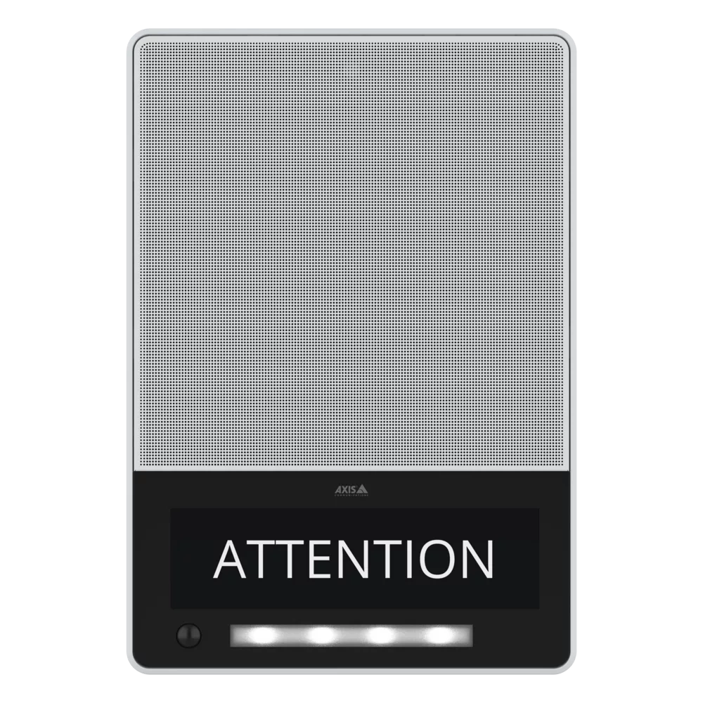 Sieciowy głośnik AXIS C1710 Network Display Speaker oferuje trzy sposoby komunikacji w jednym urządzeniu. Światło stroboskopowe przyciąga uwagę, a potężny głośnik przebijają szumy otoczenia wyraźnym głosem oraz, w razie potrzeby, głośnym alarmem. Czytelny wyświetlacz tekstowy automatycznie dostosowuje się do natężenia światła otoczenia. Ten głośnik umożliwia przesyłanie komunikatów zarówno na żywo, jak i nagranych, a także tekstu doraźnego i zaplanowanego. Priorytetyzacja treści gwarantuje, że pilne wiadomości przesłaniają zaplanowane audio, a zdalne dozorowanie i testowanie stanu pozwala upewnić się, że głośniki działają.