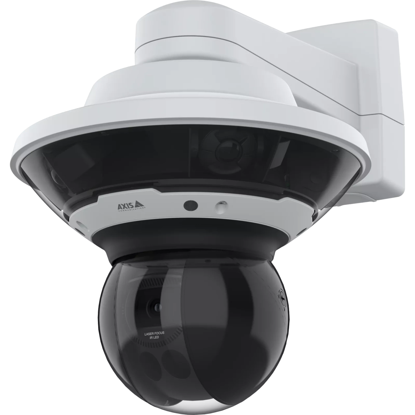 Ta wielokierunkowa kamera jest wyposażona w cztery przetworniki 5 MP i oferuje widok ogólny 360°, zapewniając pełną świadomość sytuacyjną. Dzięki czterem czujnikom ½ cala kamera zapewnia wyraźne, jasne obrazy i lepsze przetwarzanie cieni nawet w trudnych warunkach oświetlenia, co często redukuje potrzebę doświetlenia ciemnych scen w podczerwieni. Ta kamera została zaprojektowana specjalnie z myślą o współpracy z kamerami AXIS Q61/Q63/P56 PTZ Series w celu rejestrowania widoków ogólnych o wysokiej rozdzielczości i doskonałych szczegółów w ramach jednego kompletnego rozwiązania. Wystarczy jedno kliknięcie myszką, aby przejść z widoku ogólnego do powiększonego widoku szczegółowego. W kamerze można również łatwo wymieniać obiektywy regulować pole widzenia. Można na przykład użyć obiektywu szerokokątnego do monitorowania szerokich otwartych obszarów lub teleobiektywu, aby uzyskać doskonałe szczegóły z daleka. Ponadto funkcja autopilota umożliwia włączenie automatycznego śledzenia PTZ. Funkcja kierunkowej detekcji dźwięku przekierowuje kamerę PTZ na źródło dźwięku po wykryciu zdarzenia dźwiękowego.