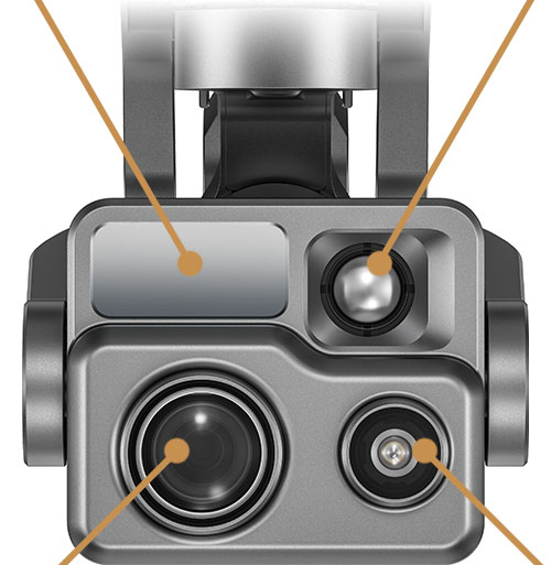 Autel EVO Max 4T V2 wyposażony został w zaawansowany gimbal Fusion 4T V2, dostarczający ostrego i stabilnego obrazu z zestawu dwóch kamer światła widzialnego i radiometrycznej kamery termowizyjnej. Wbudowany dalmierz laserowy umożliwia dodatkowo pomiary odległości do obserwowanych obiektów na dystansie do 1,2 km.