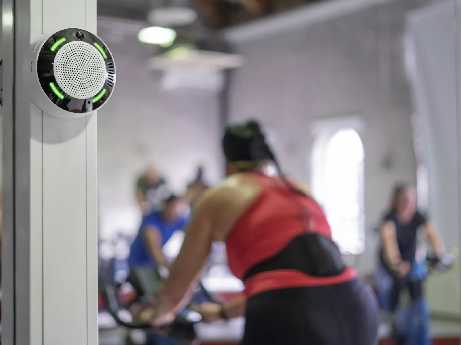 Ten czujnik monitorujący jakość powietrza w pomieszczeniach wykrywa, kiedy parametry jakości powietrza przekraczają dopuszczalne poziomy. A dzięki wbudowanemu głośnikowi i wielokolorowym diodom LED łatwo jest zautomatyzować reakcje. Można go zintegrować na przykład z kamerą wizualną, co pozwala monitorować kwestie związane z jakością powietrza. Ten zaawansowany czujnik pomaga również egzekwować zakazy dotyczące wapingu i palenia tytoniu oraz dokumentować zgodność z przepisami. Ponadto dostarcza dane dotyczące jakości powietrza, które pomagają w podejmowaniu długoterminowych decyzji strategicznych. Co więcej, nie trzeba go podłączać do kamery, a wykrywanie dźwięku można wyłączyć, więc łatwo jest zachować zgodność z przepisami dotyczącymi prywatności w obszarach, gdzie trzeba ją chronić.