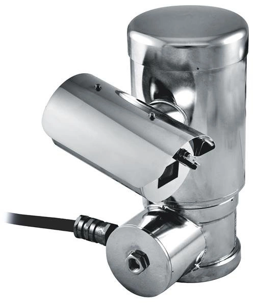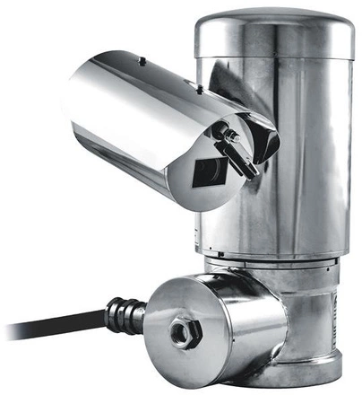 Wybuchoodporna kamera PTZ wykonana z elektropolerowanej stali nierdzewnej, możliwość obrotu w osi pionowej i poziomej 0.1°-100°/s, gwintowany otwór 1x3/4” NPT, wbudowana wycieraczka, temperatura działania -40...60°C, certyfikat IP66, kamera dzień/noc 36x zoom, rozdzielczość 320x256 lub 640x512, zasilanie 24Vac